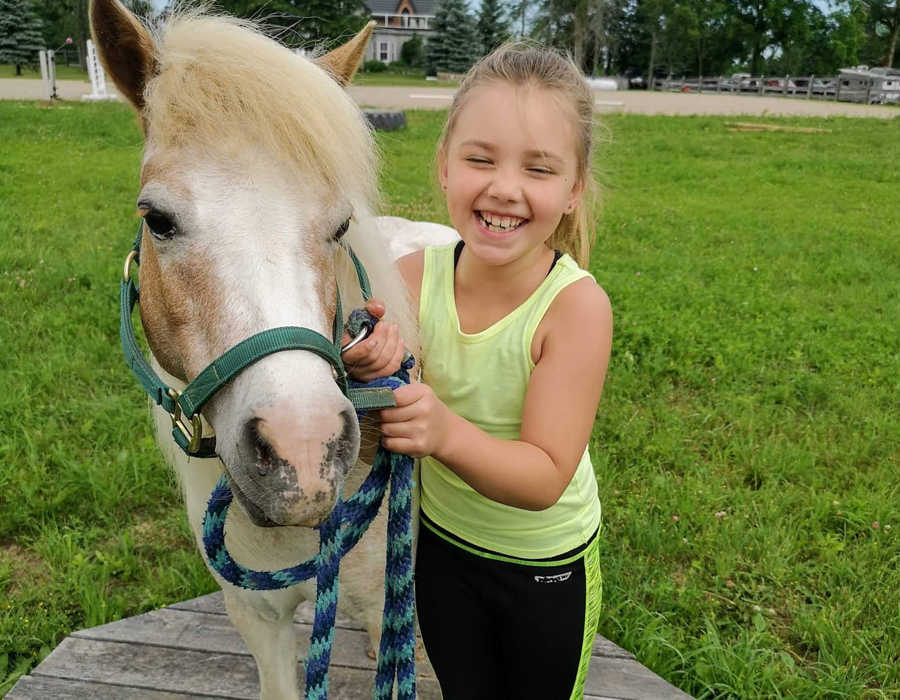 During this one-hour fun-filled program your family will have the opportunity to learn about our ponies (safety, communication, body parts…), they will learn how to lead, groom and discover the obstacle course. This hands-on experience at JohnMel Stables is a one of a kind, unique, outdoor experience. If you want your child to ride on a horse we charge an additional $30 plus HST.